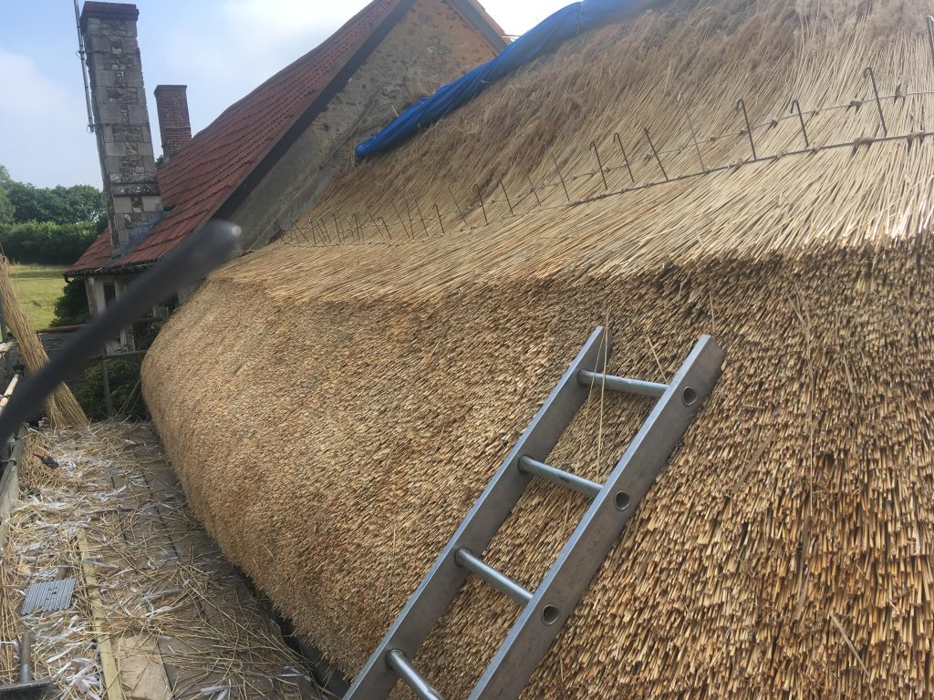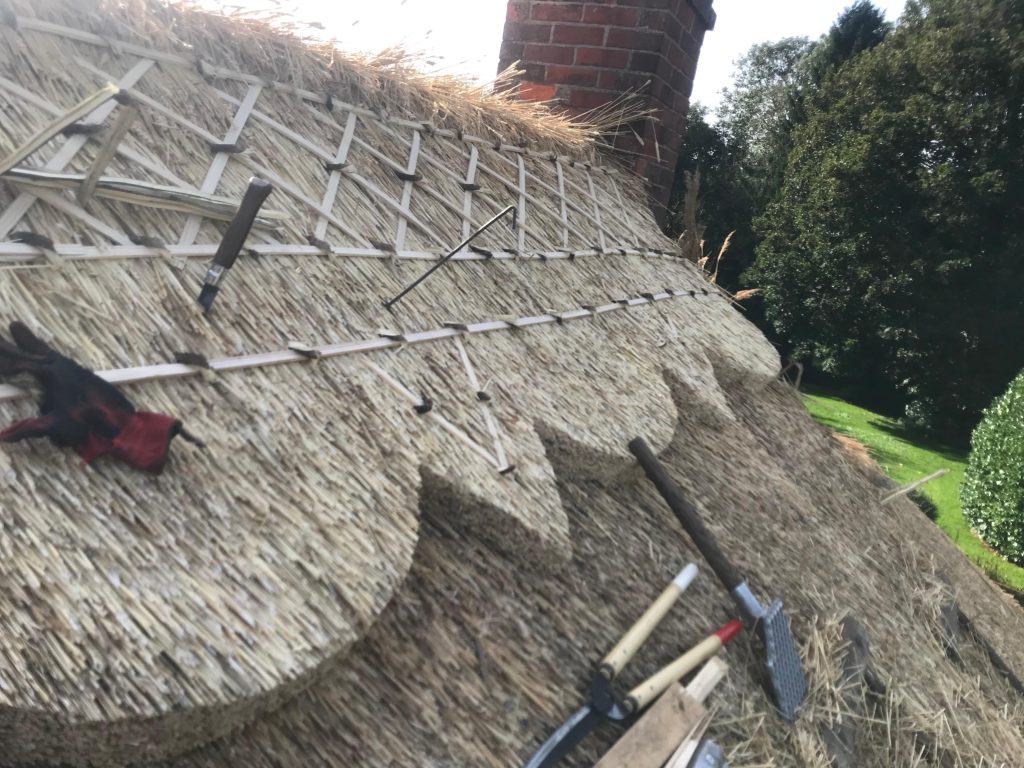 - Re-Ridging using combed wheat straw or water reed in various styles with new wire netting installed.